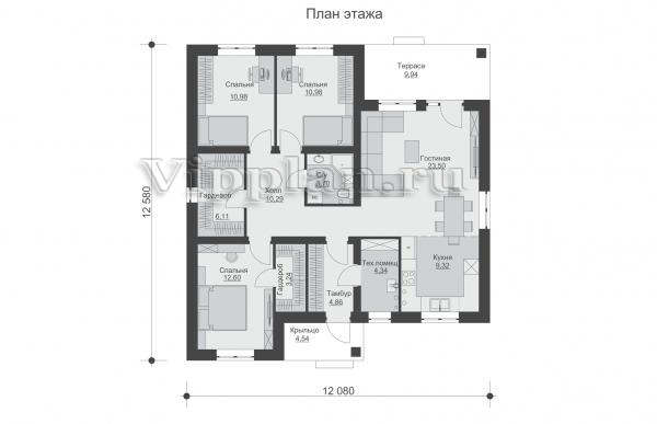 | Размеры дома: | 12.58м×12.08м |